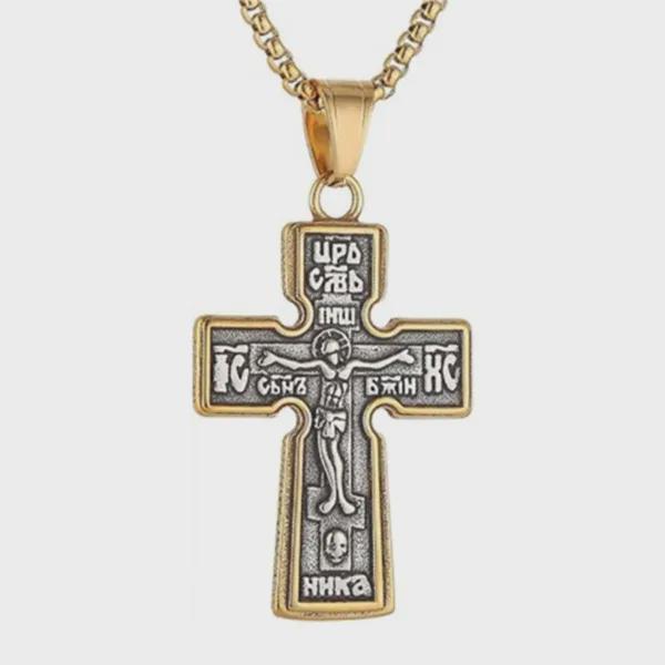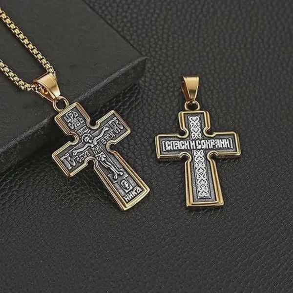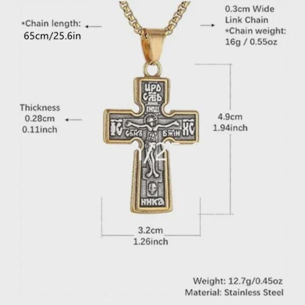 Eastern Orthodox Cross Stainless Steel Pendant Size: 49mm X 32mmChain Length: 65cm (25.6")Color: Silver & Gold