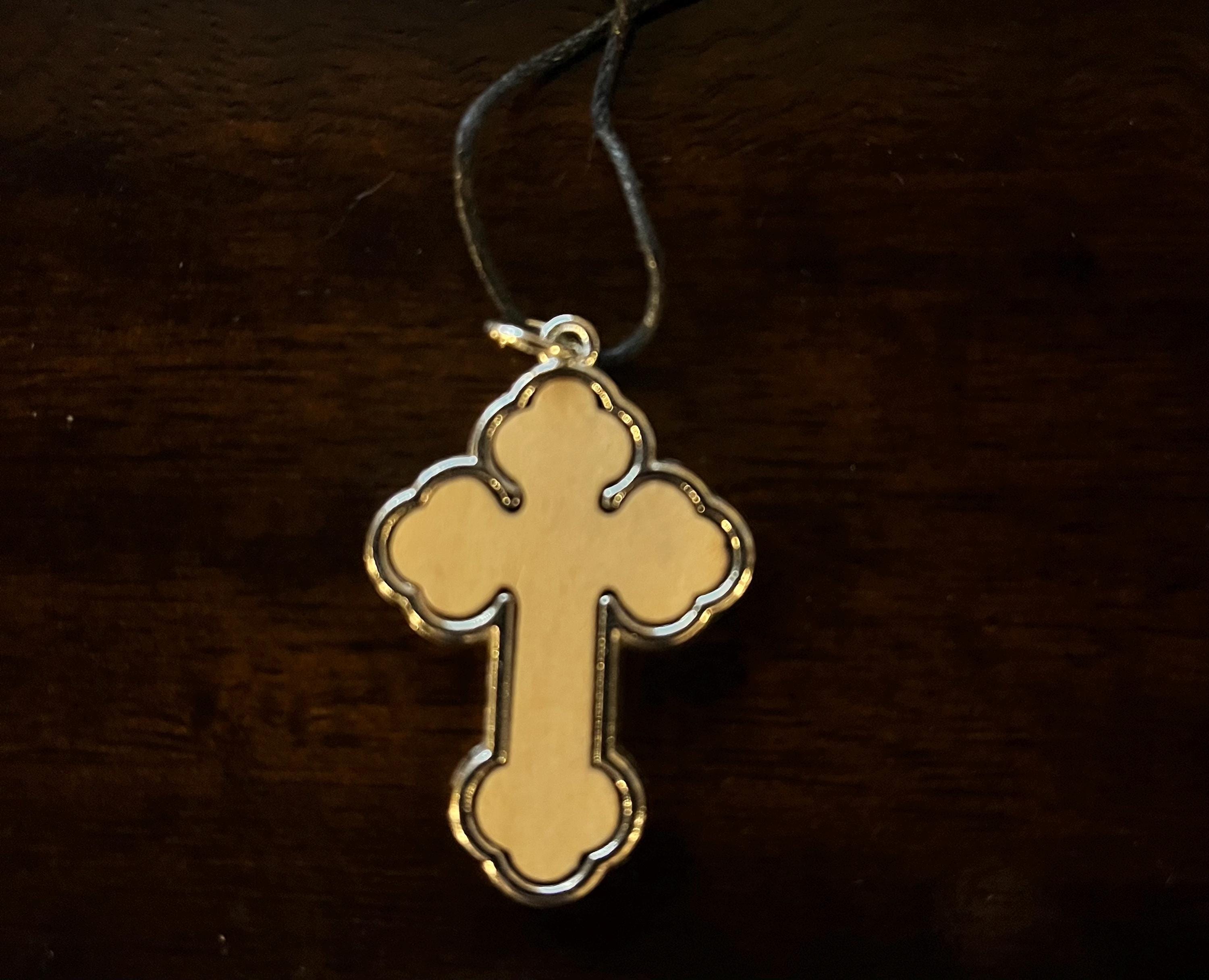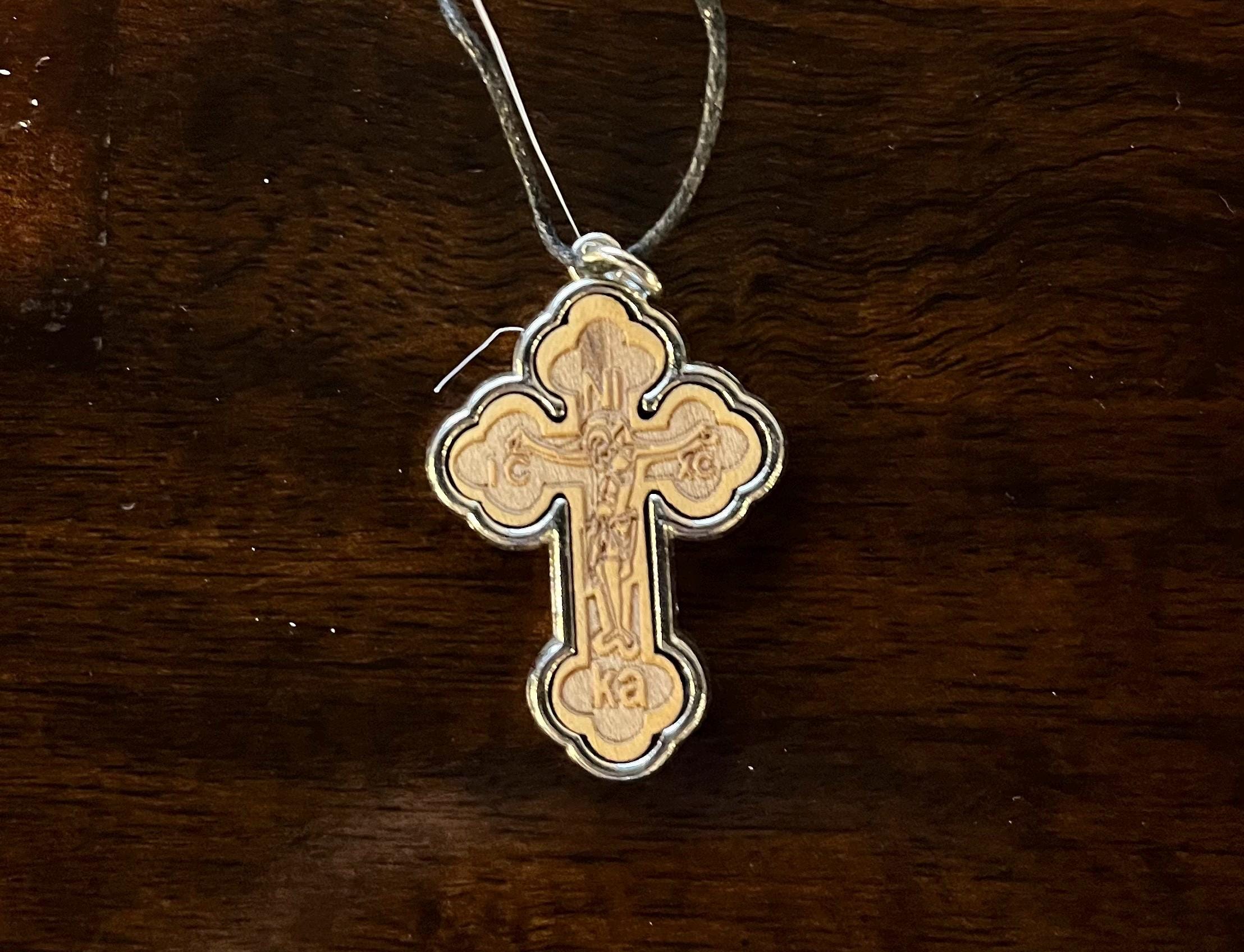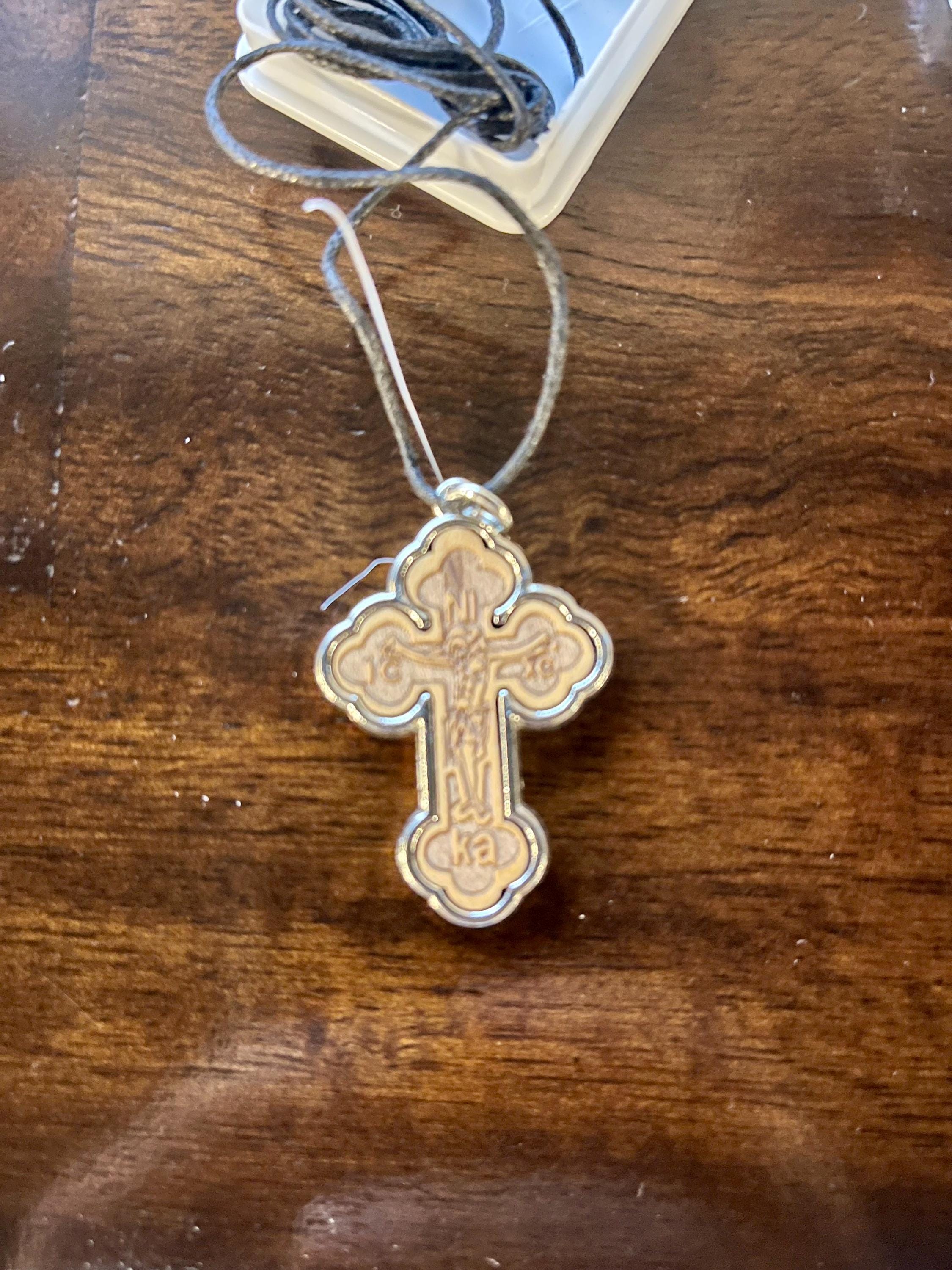Item type: Wood pendant with Silver Alloy and black leather cord.